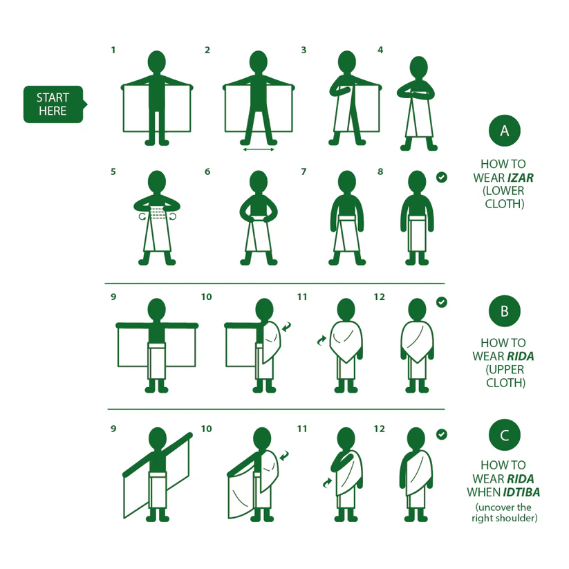 The pack contains 2 pieces of cotton Ihram towel for adults.