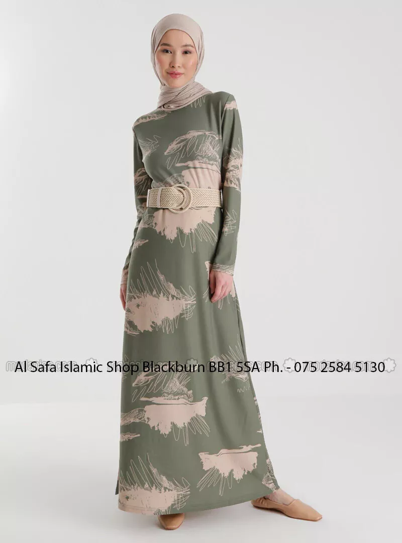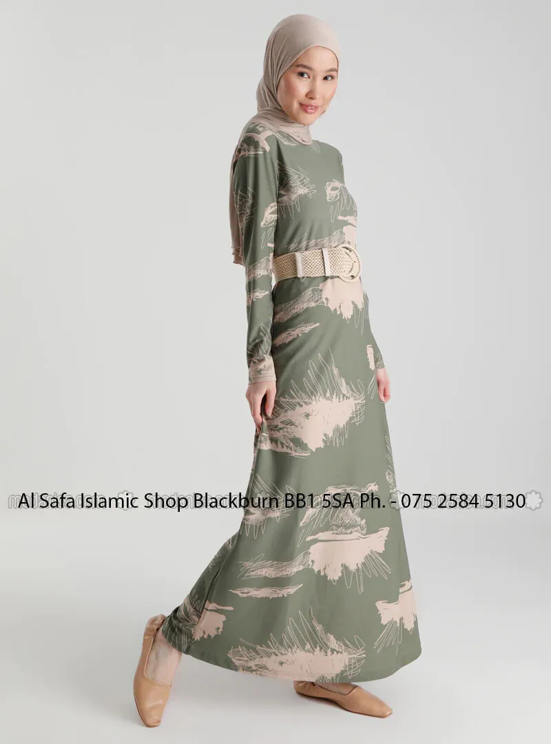 Khaki – Floral – Crew neck – Unlined – – Dress – Tofisa Size – 18