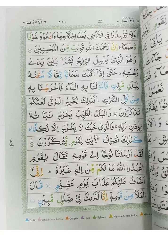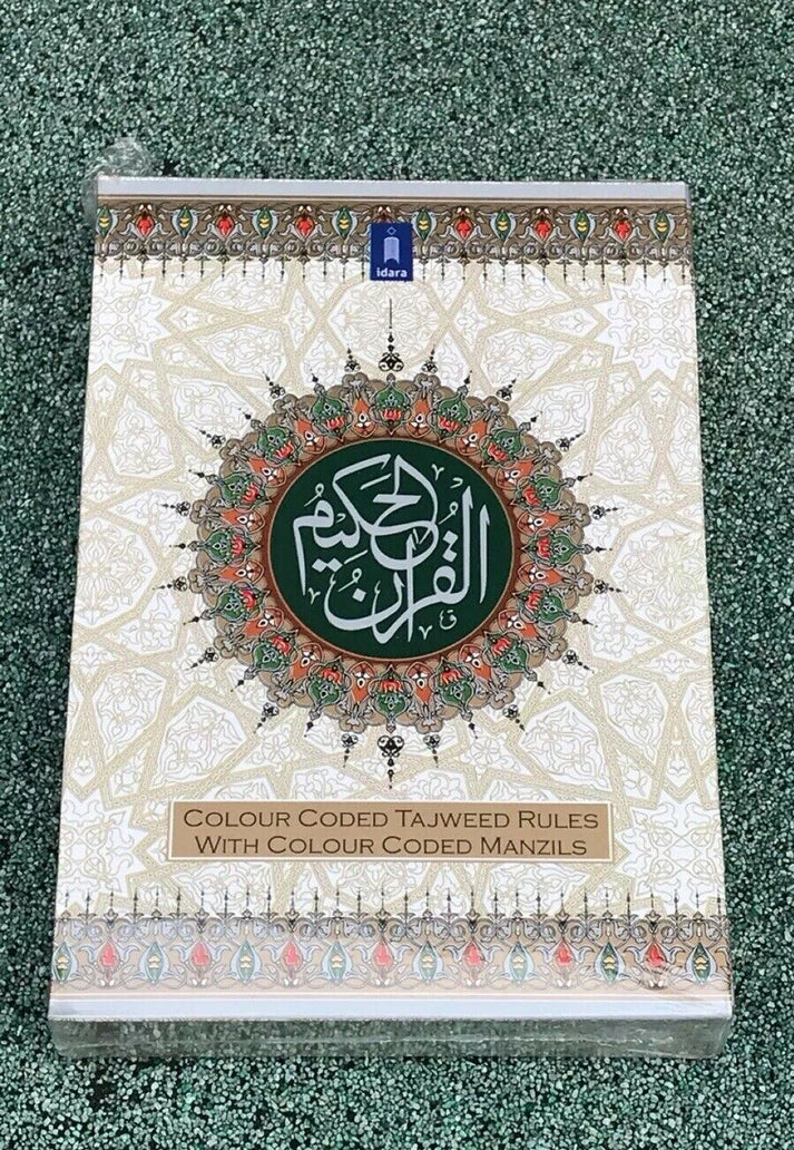 Quran in Arabic with Colour Coded Tajweed Rules and Manzils – A5 Size (Idara)