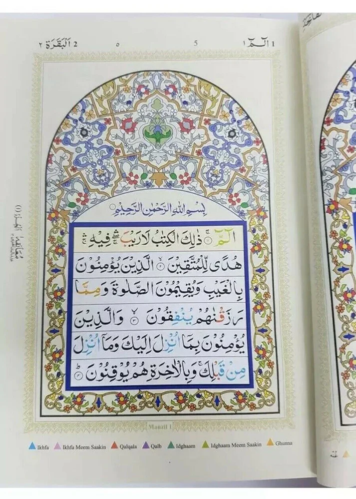 This Colour Coded Tajweed system has been introduced by idara to highlight the Rules of Tajweed with seven different Colours, each colour represents a Tajweed Rule. The Tajweed Rule allows the reciter to emphasise the accent, phonetics, rhythm and temper of The Quranic recitation. This humble effort is an attempt to facilitate the Tilaawah of The Holy Quran with proper Tajweed. It also has 30 pages of Tajweed rules in ENGLISH.